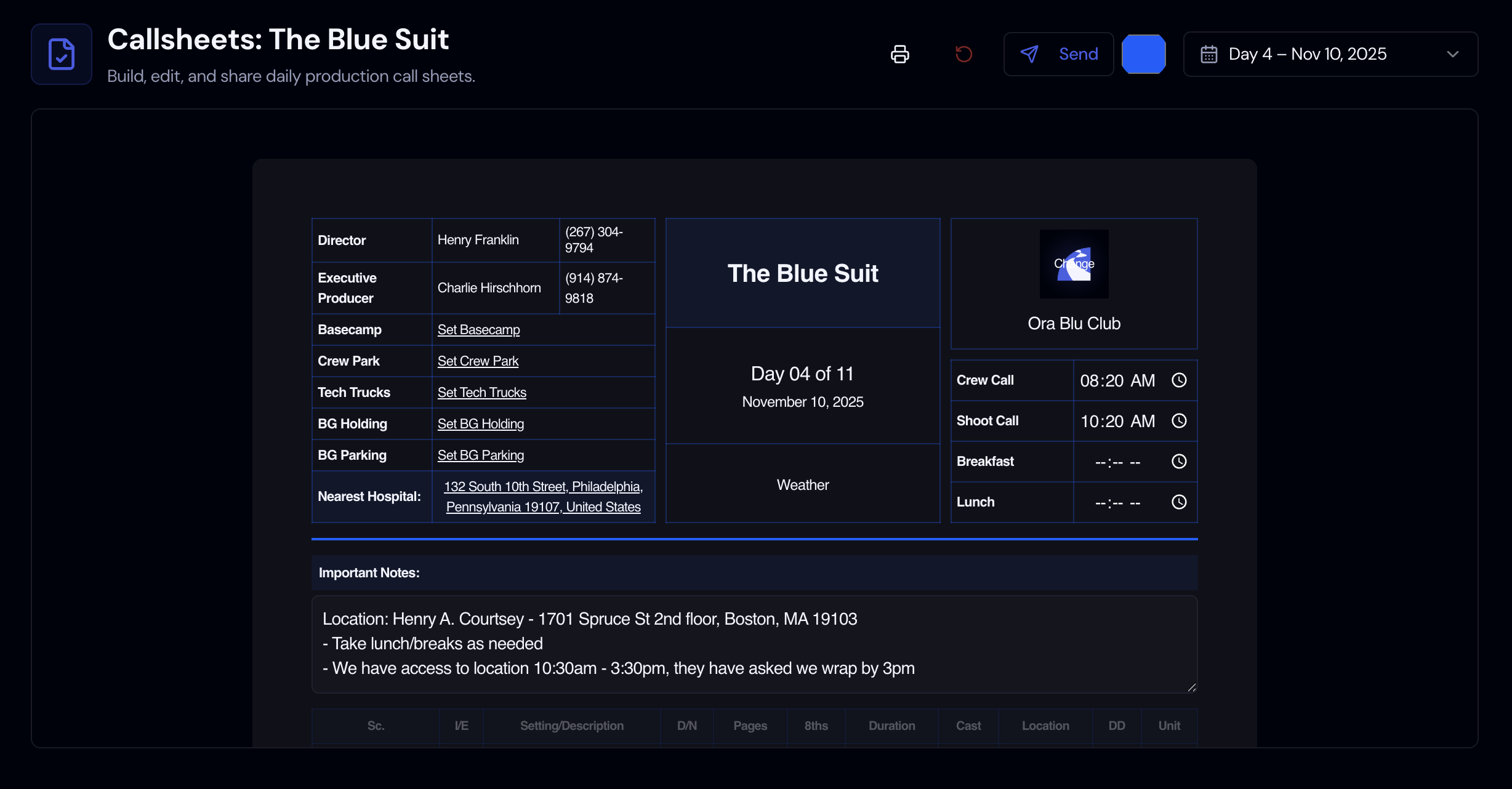 Callsheets