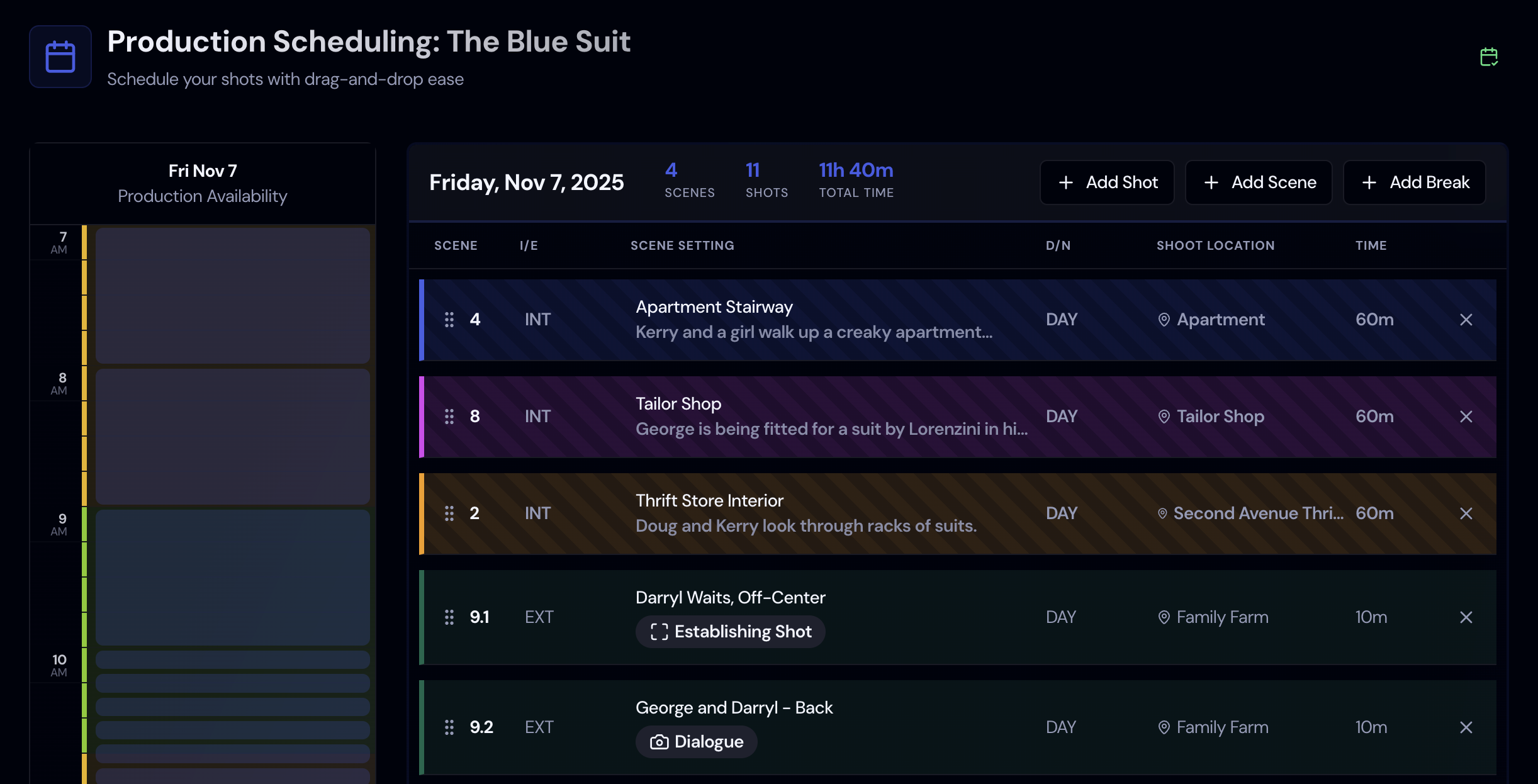 Instantly turn your scripts into professional shooting schedules and budgets. Automatically break down scenes, schedule shots, send call sheets, and optimize budgets, saving weeks of manual work and thousands in logistics.